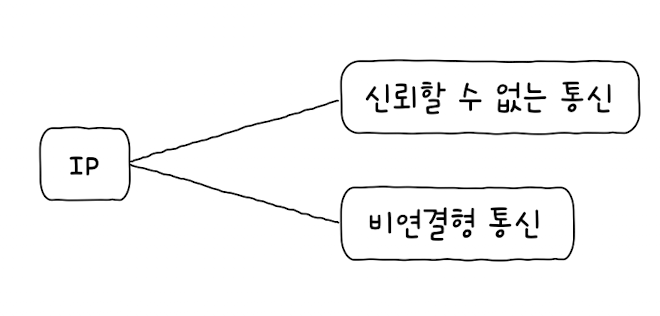 - 달리 표현하면, IP를 통한 패킷의 전달은 신뢰성이 없는 통신이자 연결을 수립하는 과정이 없는 통신이다.
