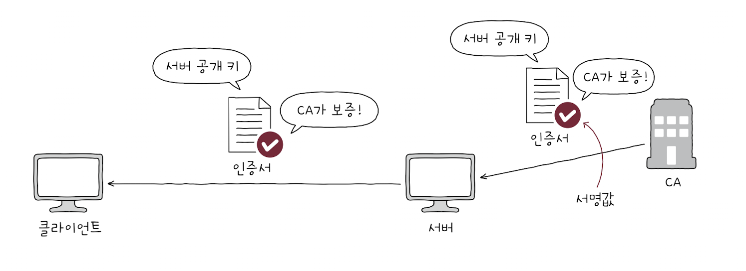 클라이언트는 서버로부터 받은 인증서의 서명 값을 인증서에서 제공하는 CA의 공개 키로 복호화하여 해시 값을 얻고, 동시에 인증서의 실제 내용으로부터 새롭게 해시 값을 계산한 후 두 값을 비교한다