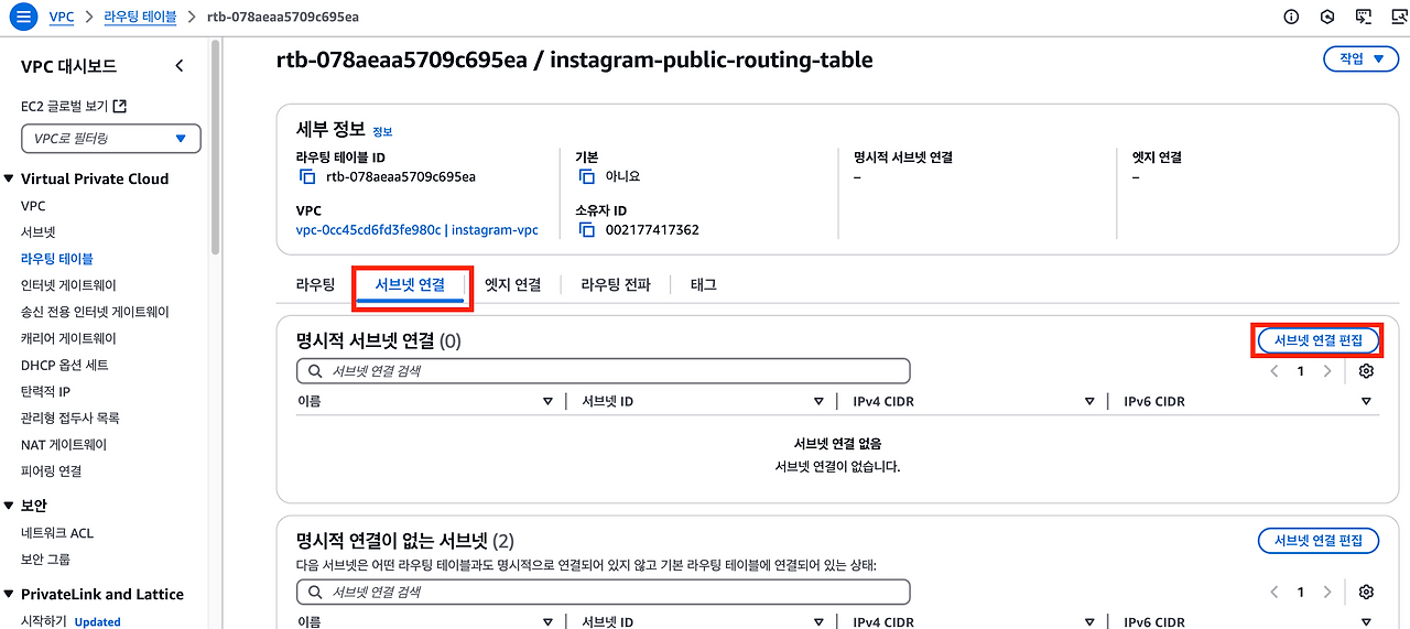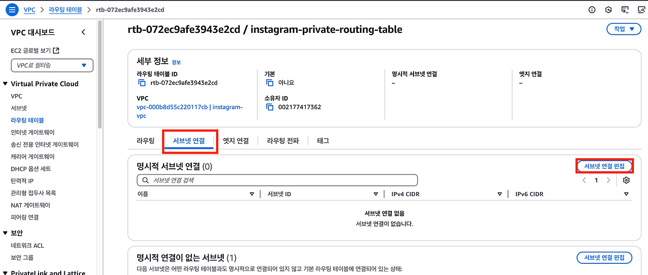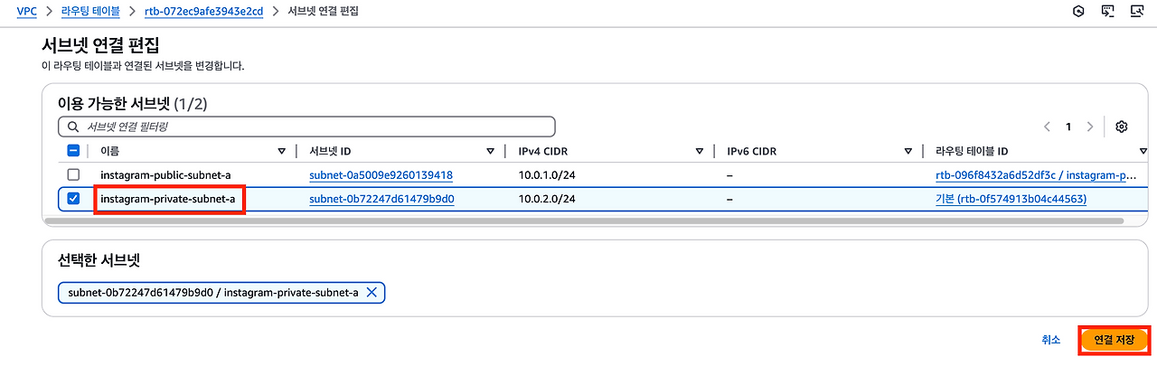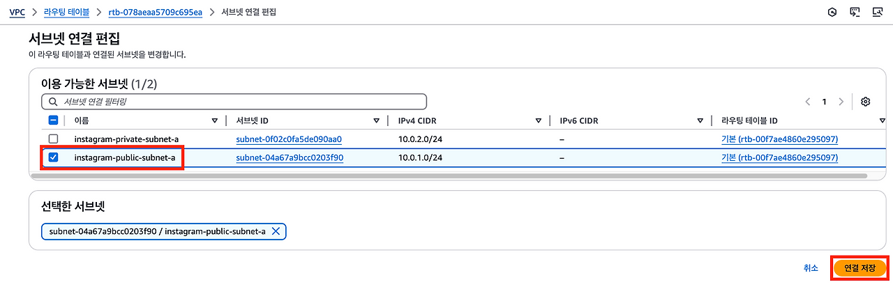 4.라우팅 테이블에 서브넷 연결하기