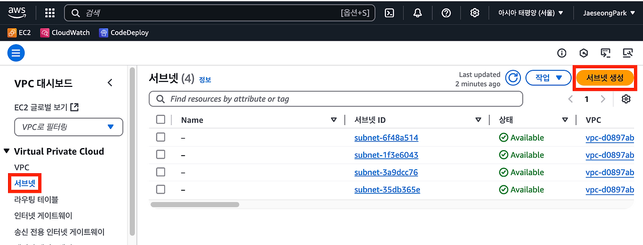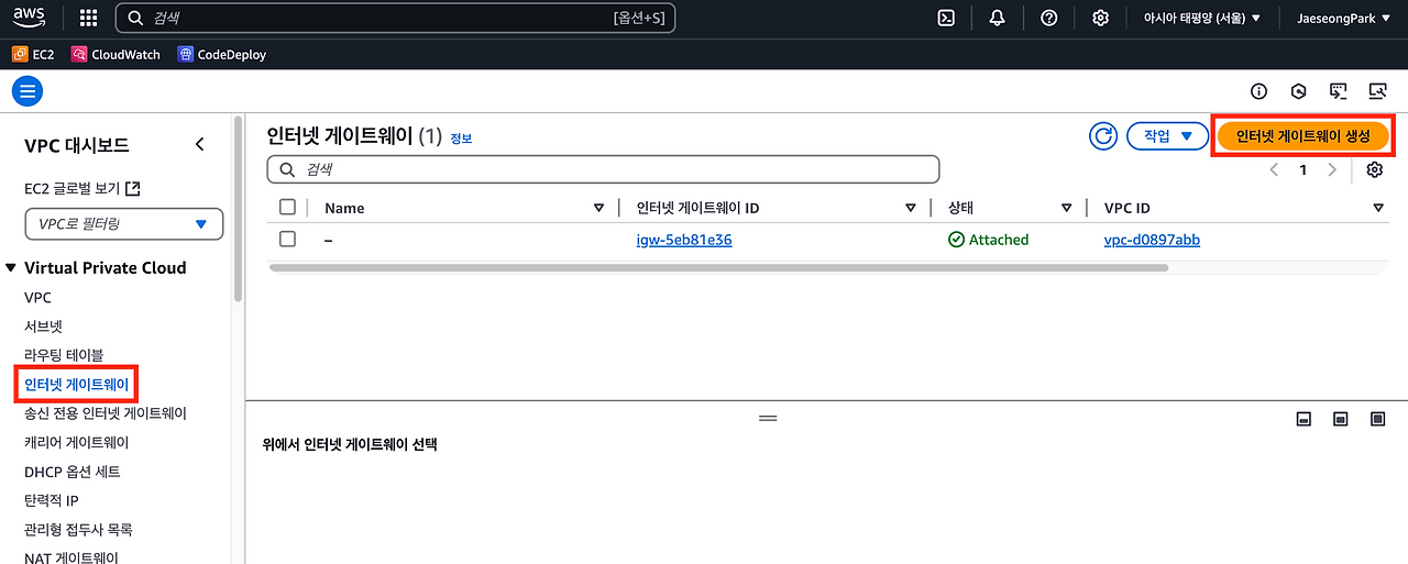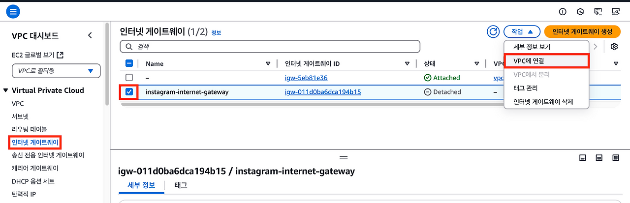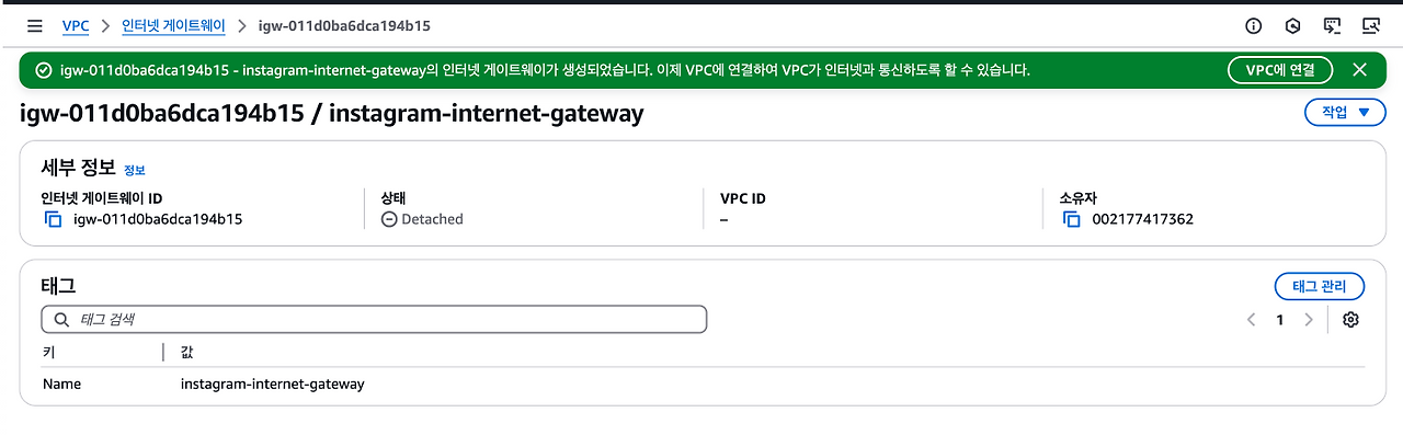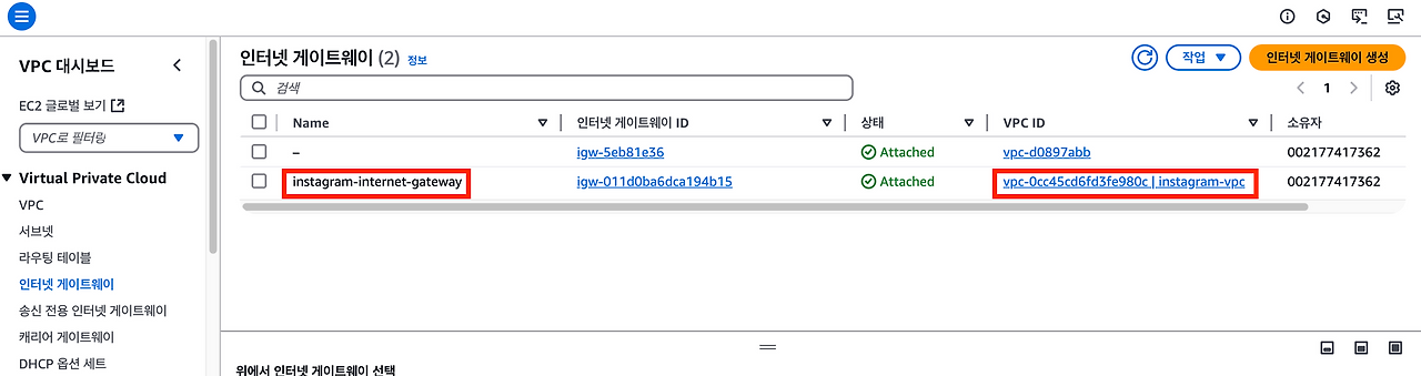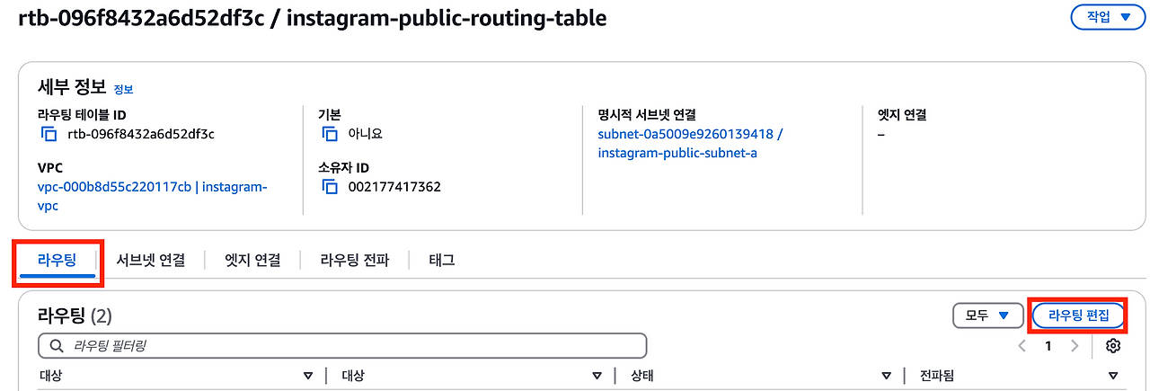 여기까지 완료했다면VPC의 서브넷에 배치되어 있는 AWS 리소스가 외부 인터넷과 통신을 할 수 있을 것이다.