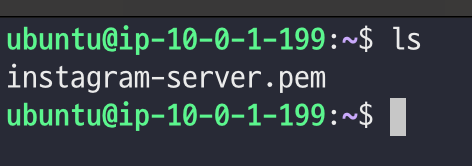 $ ssh -i "instagram-server.pem" ubuntu@[EC2 인스턴스의 프라이빗 IP]