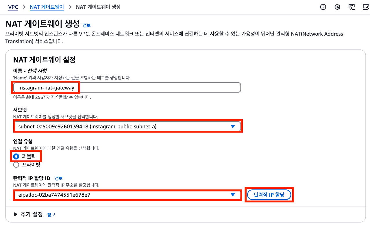 2.NAT 게이트웨이 생성하기