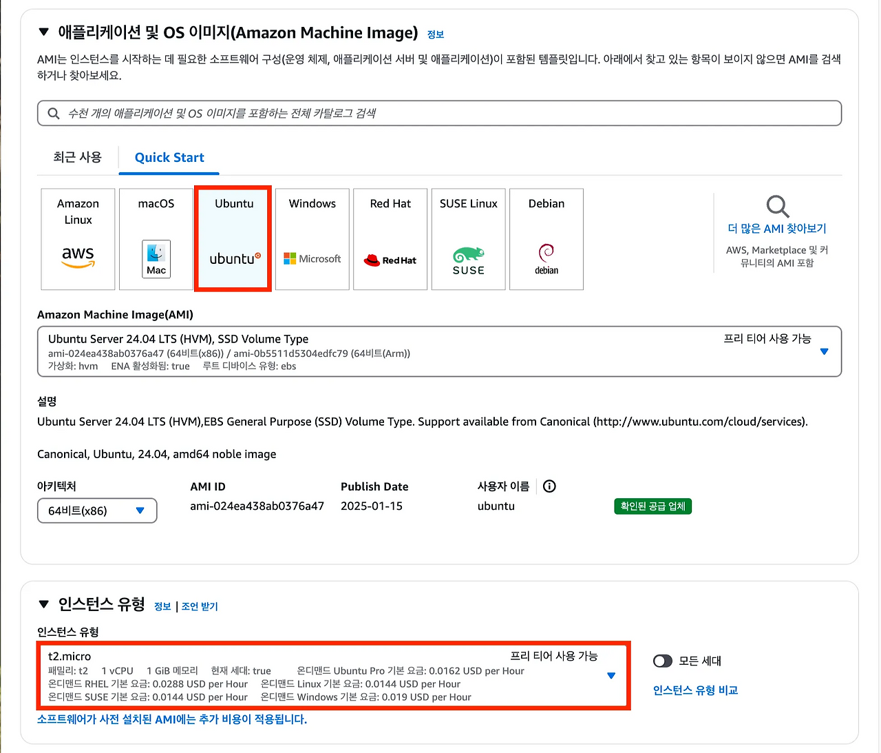 2. EC2 인스턴스 옵션 선택하기