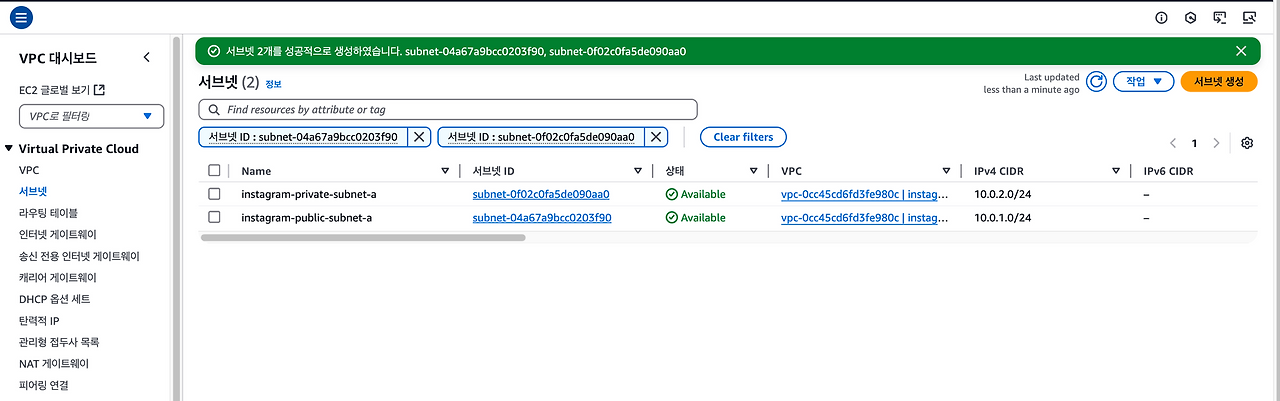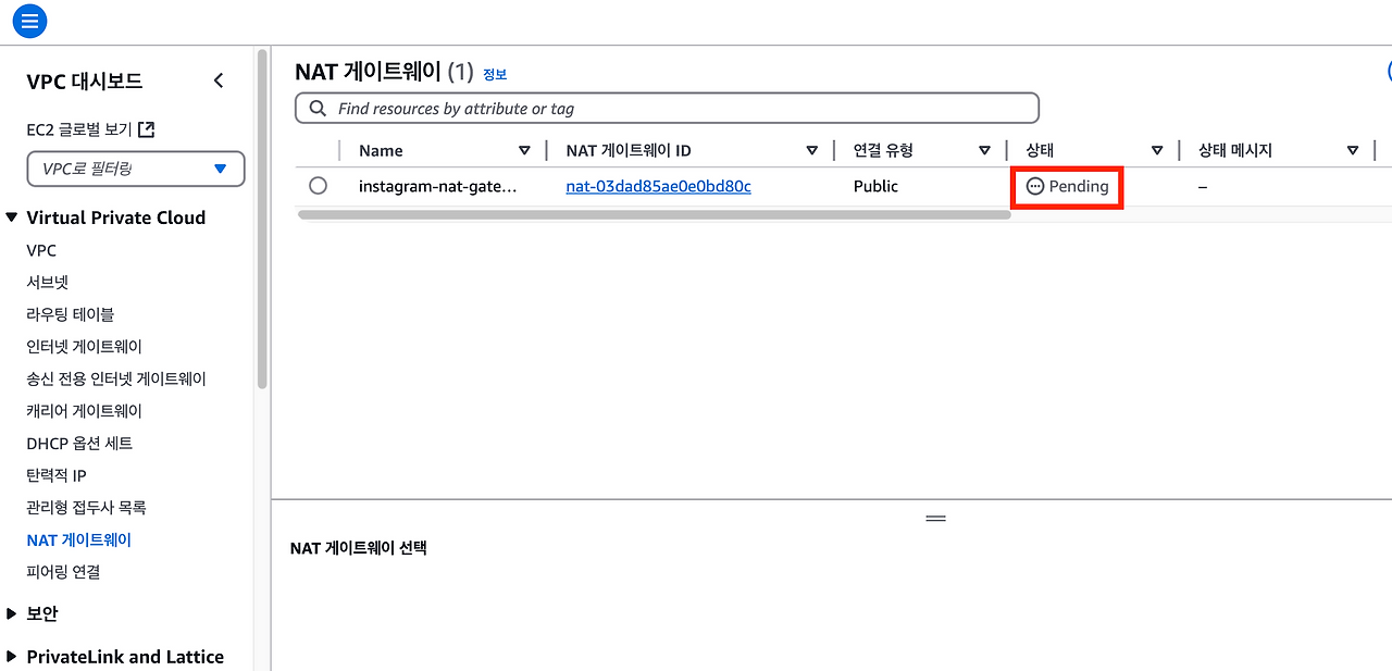 NAT 게이트웨이는 생성되는 데 1~2분 정도의 시간이 걸리니 조금만 기다리면 된다.