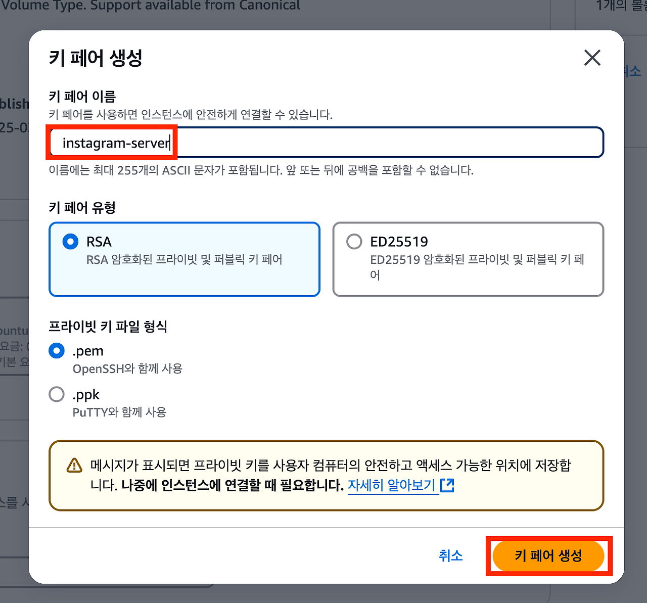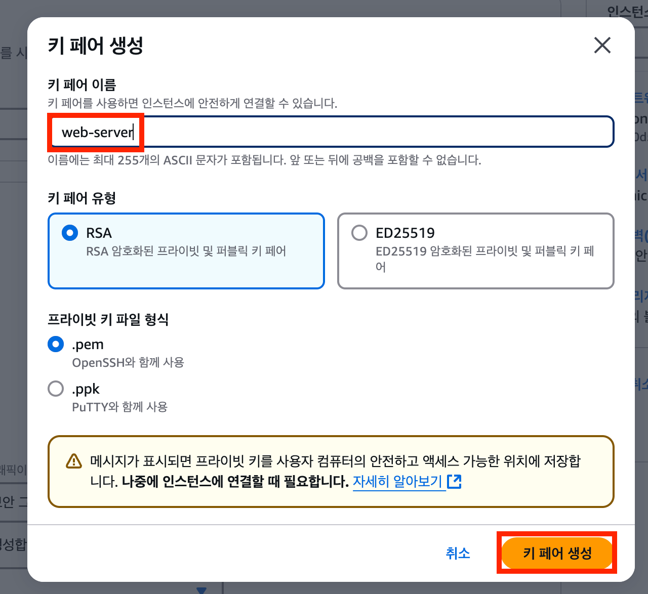 3. 키 페어 생성하기