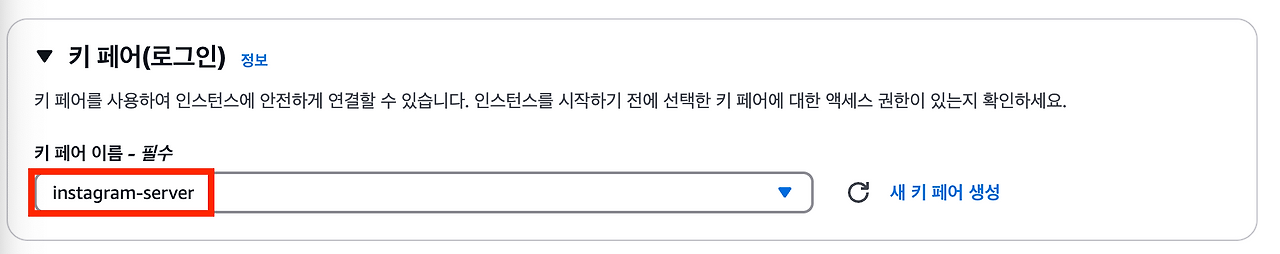 $ chmod 400 "instagram-server.pem" # 키 페어 파일 보안을 위한 권한 설정