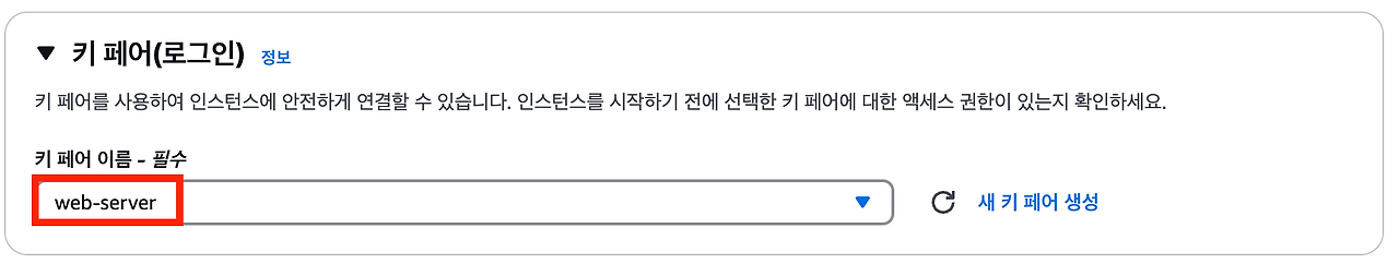 $ chmod 400 "web-server.pem" # 키 페어 파일 보안을 위한 권한 설정