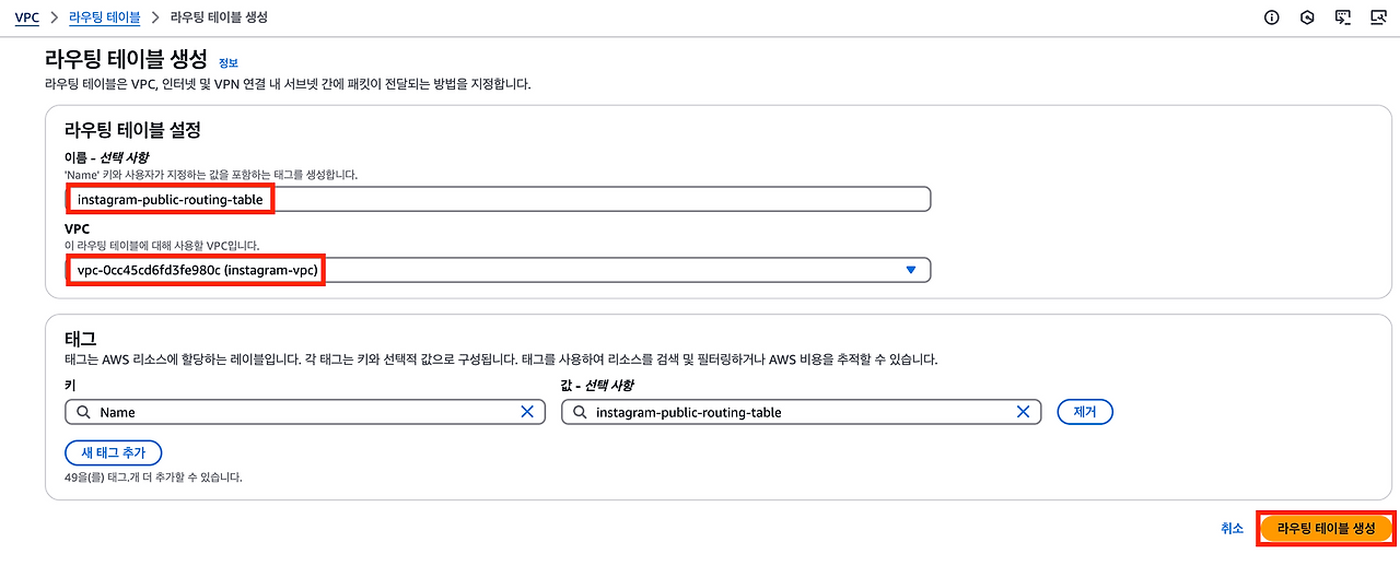 라우팅 테이블을 만들어서트래픽이 프라이빗 서브넷 → NAT 게이트웨이의 방향으로 이동할 수 있게 경로를 설정해야한다.