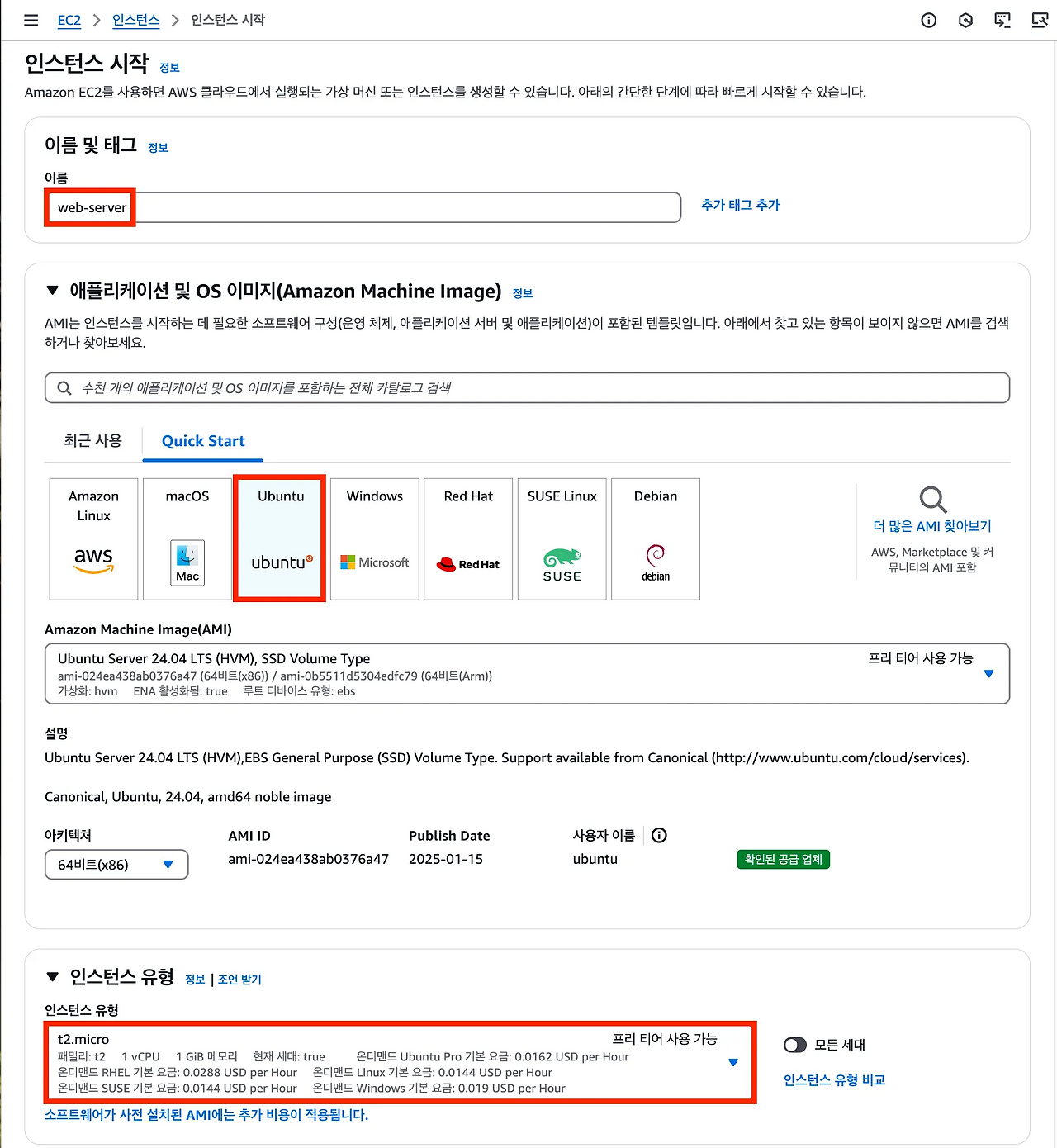 2. EC2 인스턴스 옵션 선택하기