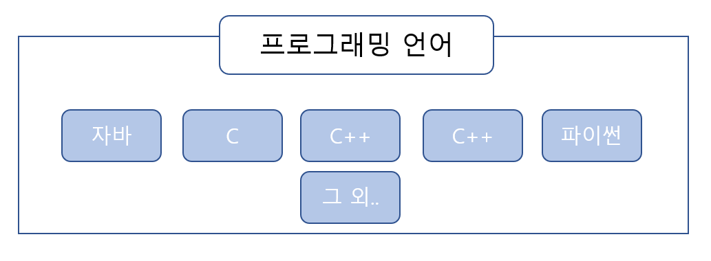 프로그래밍 언어에는 C, C++, C#, JAVA, Python 등이 있다.