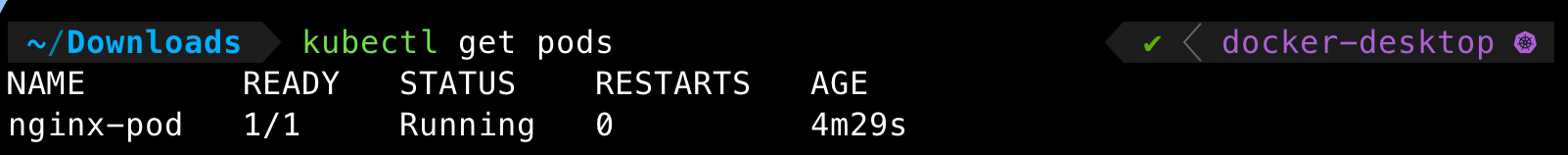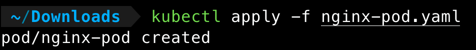 kubectl apply -f nginx-pod.yaml # yaml 파일에 적혀져있는 리소스(파드)를 생성