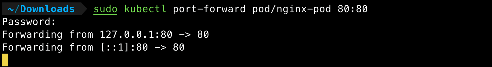sudo kubectl port-forward pod/nginx-pod 80:80