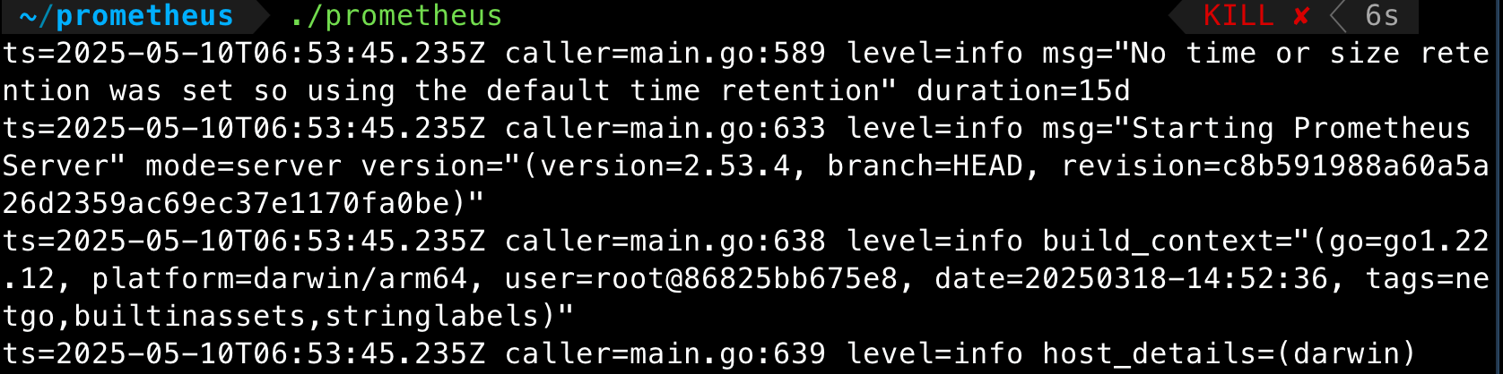 설정이 끝났으면 프로메테우스 서버를 종료하고 다시 실행해야 한다.