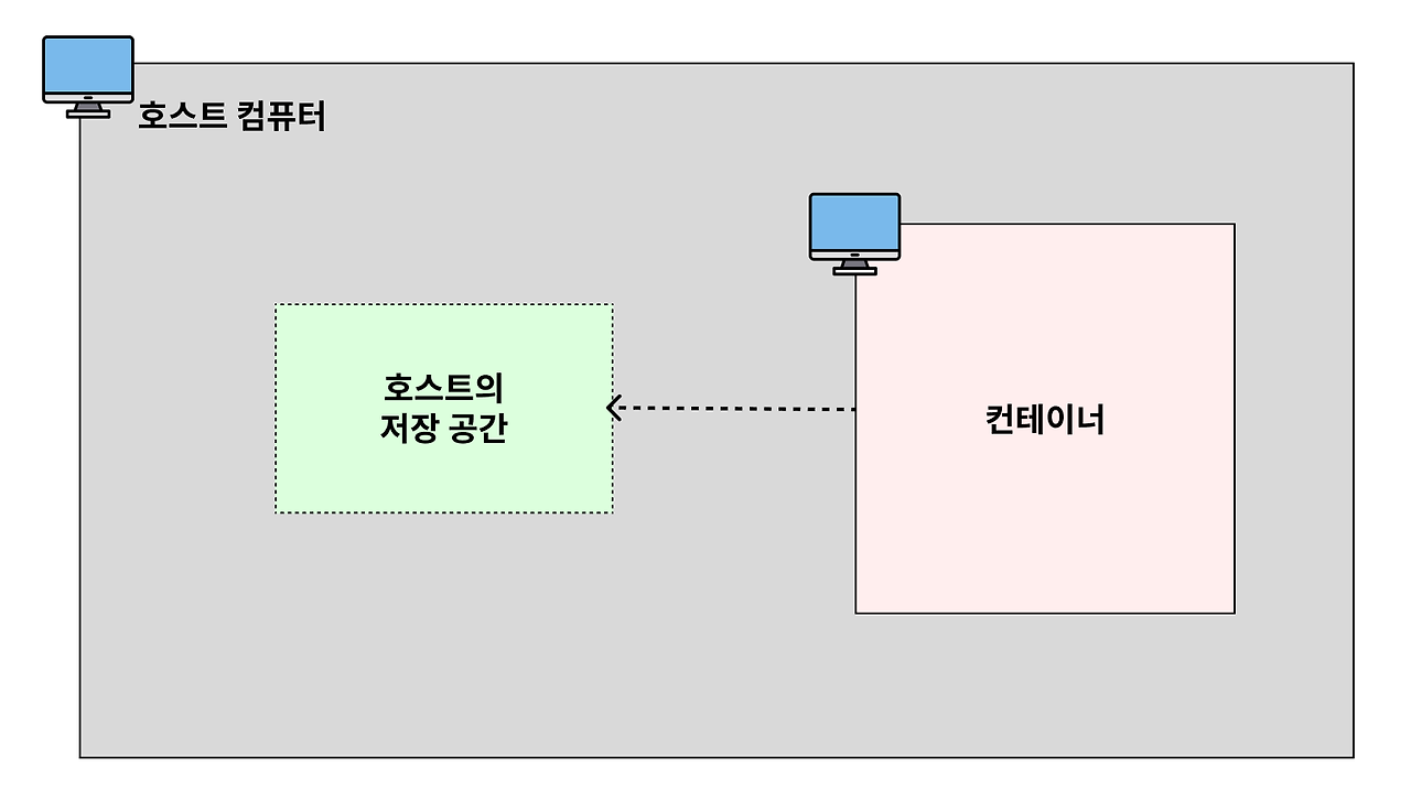 볼륨(Volume)은 컨테이너 자체의 저장 공간을 사용하지 않고, 호스트 자체의 저장 공간을 공유해서 사용하는 형태이다.