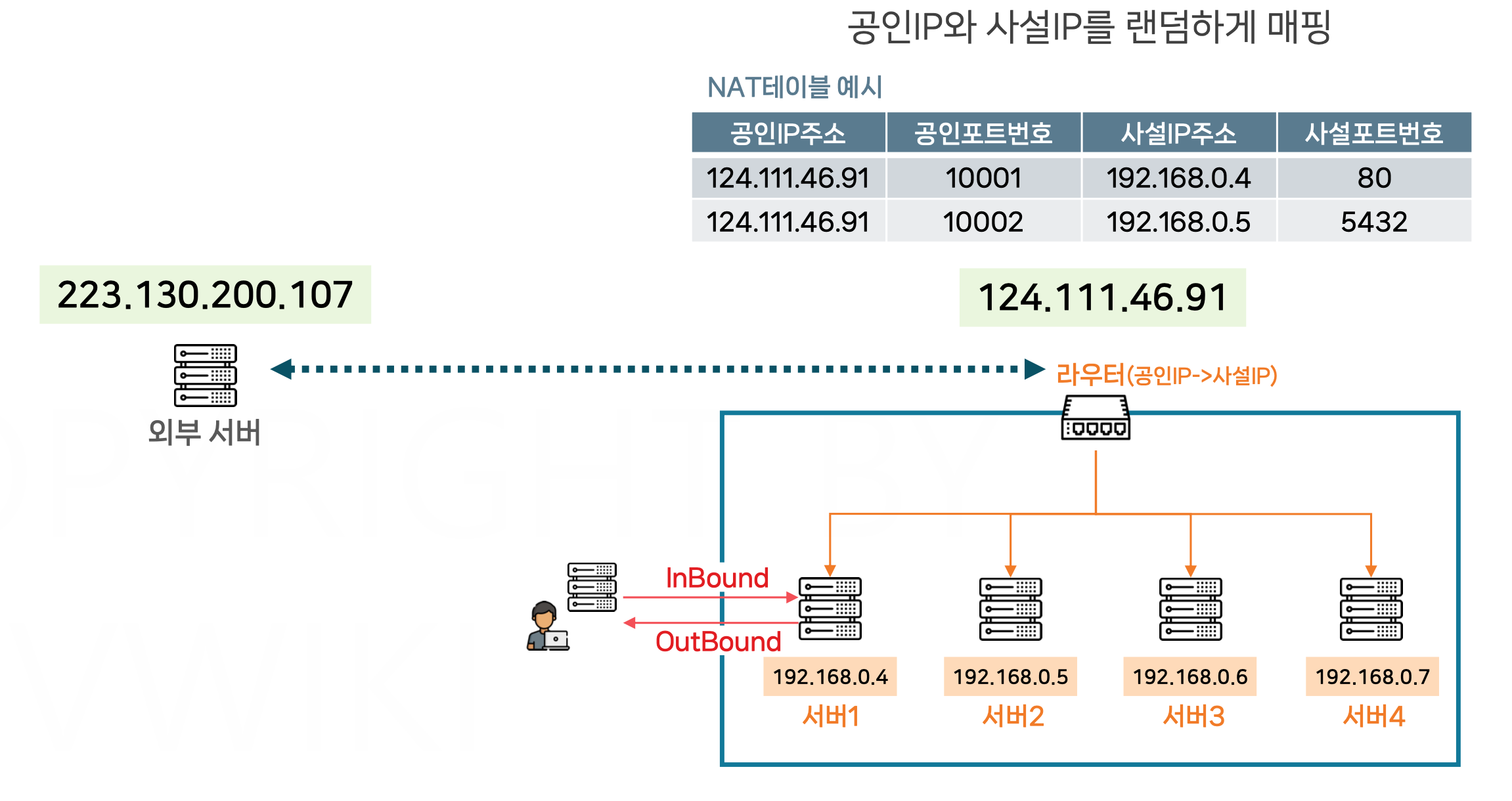 - 주요 역할: 공인 IP의 특정 포트로 들어오는 외부 요청을 내부 네트워크의 특정 장치(사설 IP)와 특정 포트로 전달하는 기술이다.