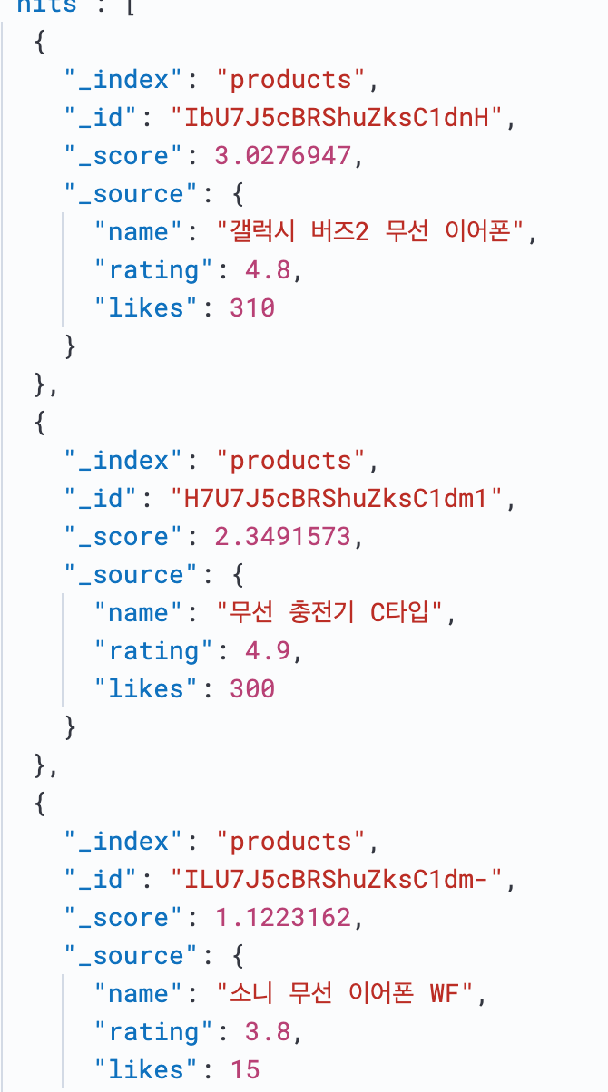 이와 같이 score에 가산점을 주는 bool 쿼리의 should를 활용해 원하는 조건을 갖추고 있는 데이터를 상단에 노출되게 만들 수 있다.