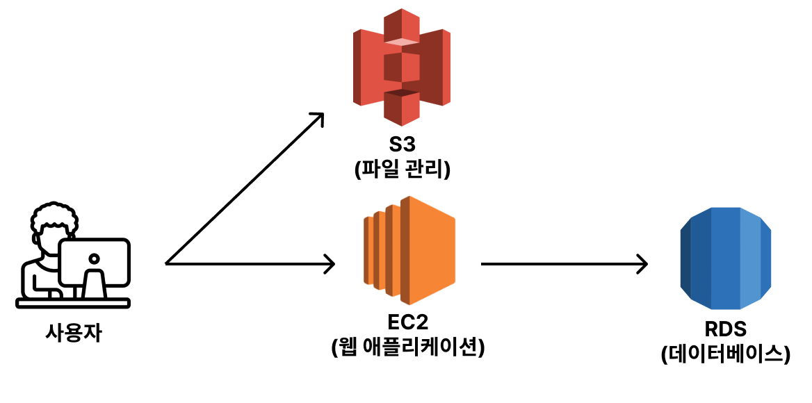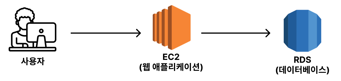- 하지만 위의 구성으로 실제 서비스를 운영하다보면 데이터베이스가 생각보다 많은 컴퓨팅 자원(CPU, 메모리, 디스크)을 사용한다. 데이터베이스로 인해 웹 애플리케이션의 성능에 악영향을 줄 수 있기 때문에 별도의 서버를 분리하는 형식을 많이 가져간다.