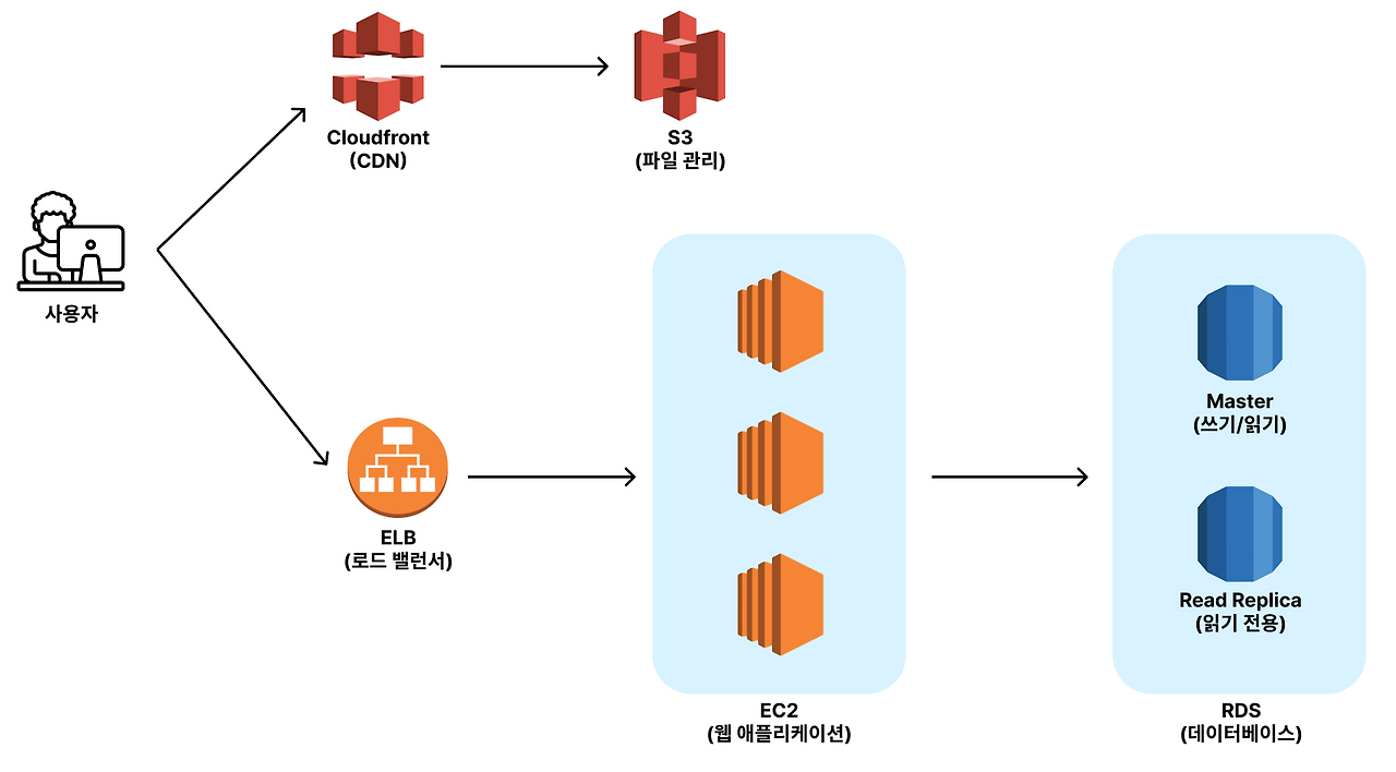 - 위 인프라 구성에서 트래픽이 많아지면 정적 파일(이미지, 비디오, 웹 페이지 등)을 제공하는 부분에서 문제가 될 가능성이 크다.