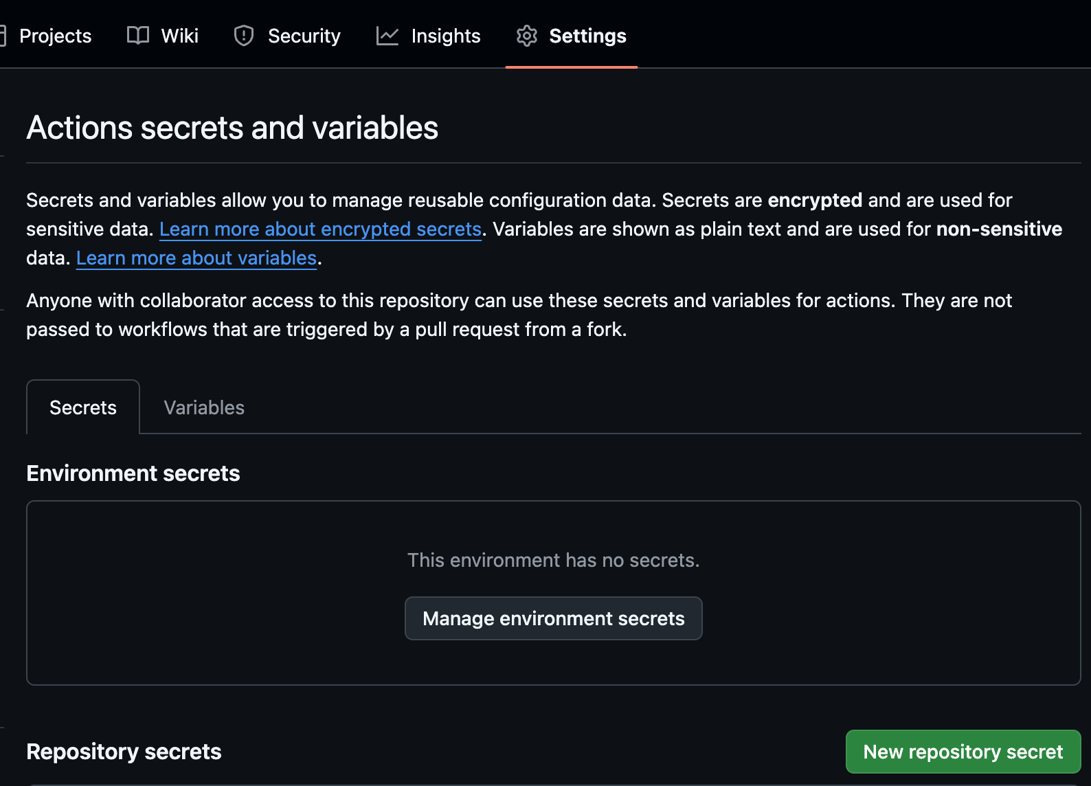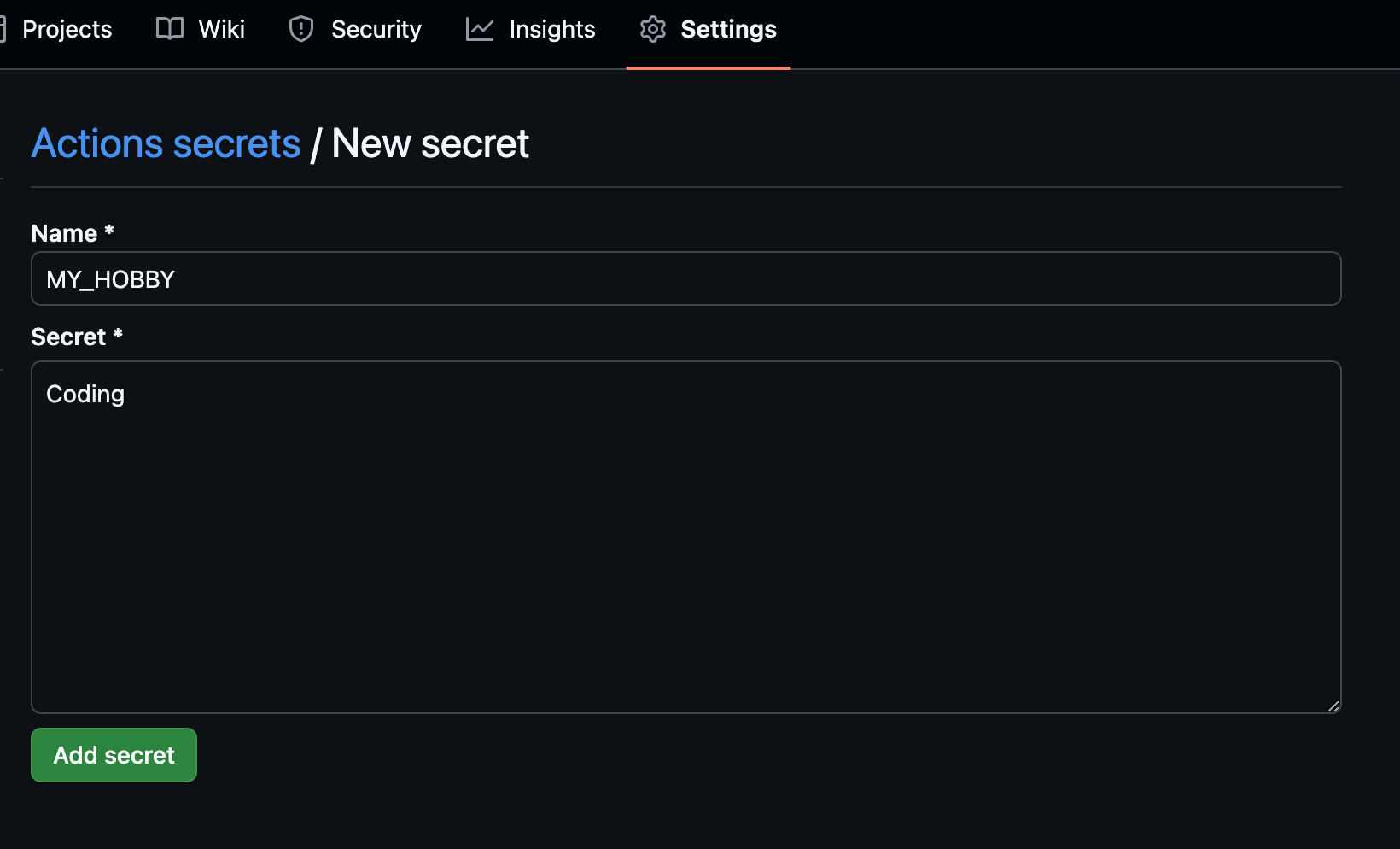 시크릿 변수는 아래와 같이 지정할 수 있다.
