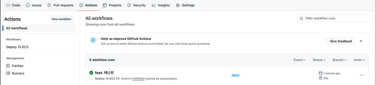 이 방법은 주로 개인 프로젝트에서 CI/CD를 심플하고 빠르게 적용시키고 싶을 때 적용한다.