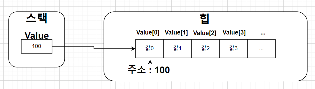 위에서 말했듯이 Value라는 배열 변수는 "값 0~4"를 가지는 배열 객체를 참조하고 있는 것이다.